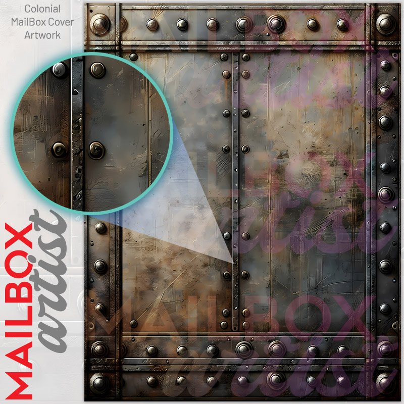 With this Rusty Metal Door colonial mailbox cover it’s pretty easy to convert your mailbox to a special and unique item. These covers require a flat surface, so they work with colonial mailboxes that do not have any embossed decoration or signs. Magnetic mailbox covers work with steel colonial boxes only, while self-adhesive vinyl covers are available for aluminum, plastic and steel boxes. We also offer both self-adhesive and magnetic covers with regular opaque white vinyl or reflective vinyl, which works similarly to license plates or road signs. The reflective option makes the entire cover’s surface reflective, ensuring visibility at night. In case your mailbox doesn’t work with these covers, you can purchase the preinstalled cover on a brand new mailbox as well. Also, you can create your custom colonial mailbox cover using you own pictures, adding your name, street number, etc.