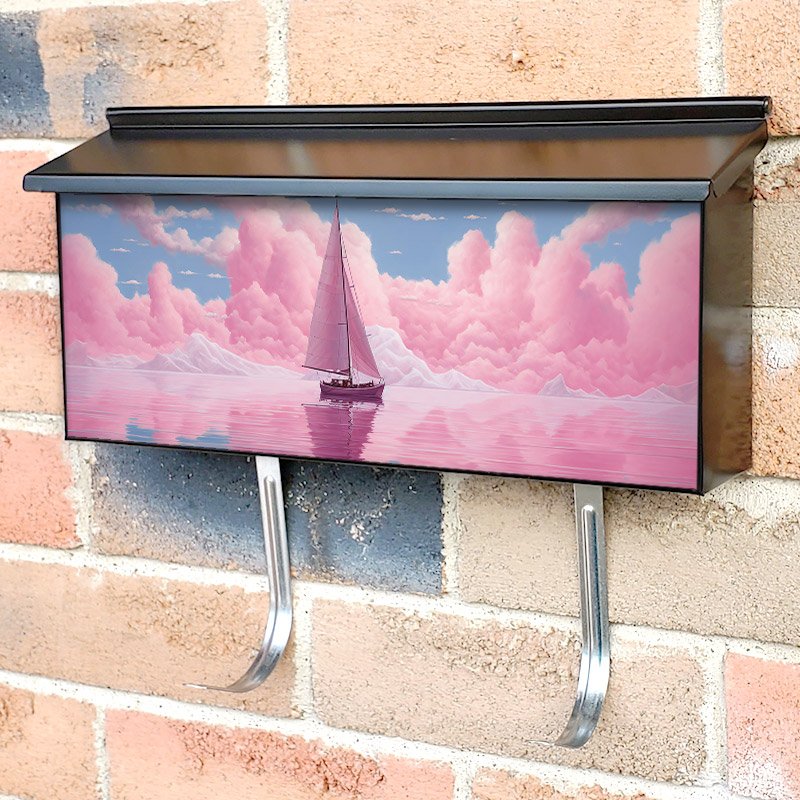 Applying your Sailboat On Pink Sea And Pink Sky View townhouse / ranch mailbox cover it’s pretty easy to convert your mailbox to a special and unique item. These covers require a flat surface, so they work with townhouse / ranch mailboxes that do not have any embossed decoration or signs. Magnetic mailbox covers work with steel boxes, for aluminum and plastic boxes we offer the self-adhesive vinyl covers. In case your mailbox doesn’t work with these covers, you can purchase the preinstalled cover on a brand new mailbox as well. Also, you can create your custom townhouse / ranch mailbox cover using you own pictures, adding your name, street number, etc.