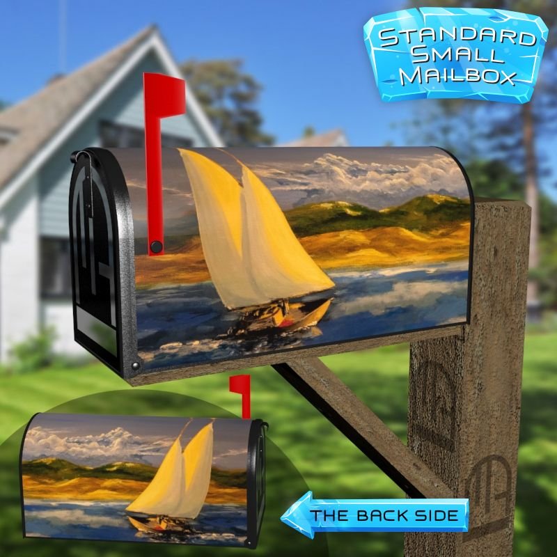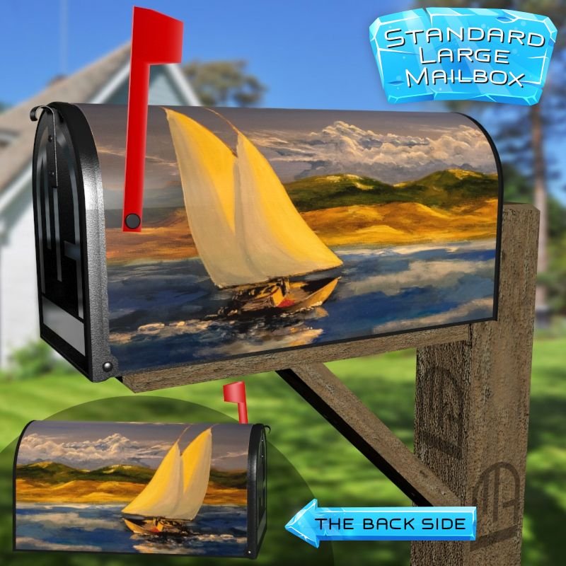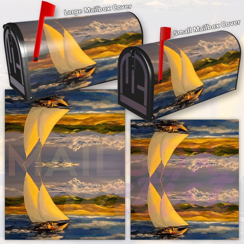 Dressing up your rural farm mailbox with the Sailboat on the Sea mailbox cover is an easy way to convert it into a unique and special item. These covers require a smooth surface, so they are compatible with rural farm mailboxes that do not have any embossed decorations or signs. Magnetic mailbox covers work with steel boxes only, while self-adhesive vinyl covers are available for aluminum, plastic and steel boxes. If your mailbox is not compatible with these covers, you can purchase a brand new mailbox with a preinstalled cover. Additionally, you have the option to create a custom rural farm mailbox cover with your own pictures, name, street number, etc.