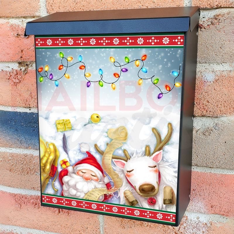 With this Santa and Rudolph Sleeping colonial mailbox cover it’s pretty easy to convert your mailbox to a special and unique item. These covers require a flat surface, so they work with colonial mailboxes that do not have any embossed decoration or signs. In case your mailbox doesn’t work with these covers, you can purchase the preinstalled cover on a brand new mailbox as well. Also, you can create your custom colonial mailbox cover using you own pictures, adding your name, street number, etc.