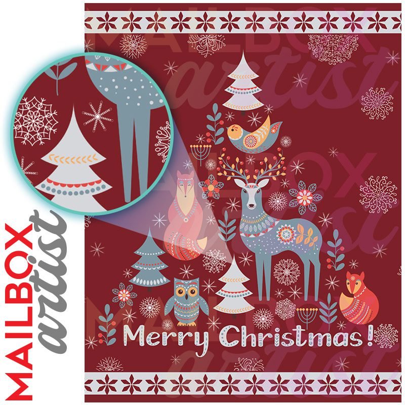 With this Scandinavian Folk Art Christmas #5 colonial mailbox cover it’s pretty easy to convert your mailbox to a special and unique item. These covers require a flat surface, so they work with colonial mailboxes that do not have any embossed decoration or signs. In case your mailbox doesn’t work with these covers, you can purchase the preinstalled cover on a brand new mailbox as well. Also, you can create your custom colonial mailbox cover using you own pictures, adding your name, street number, etc.