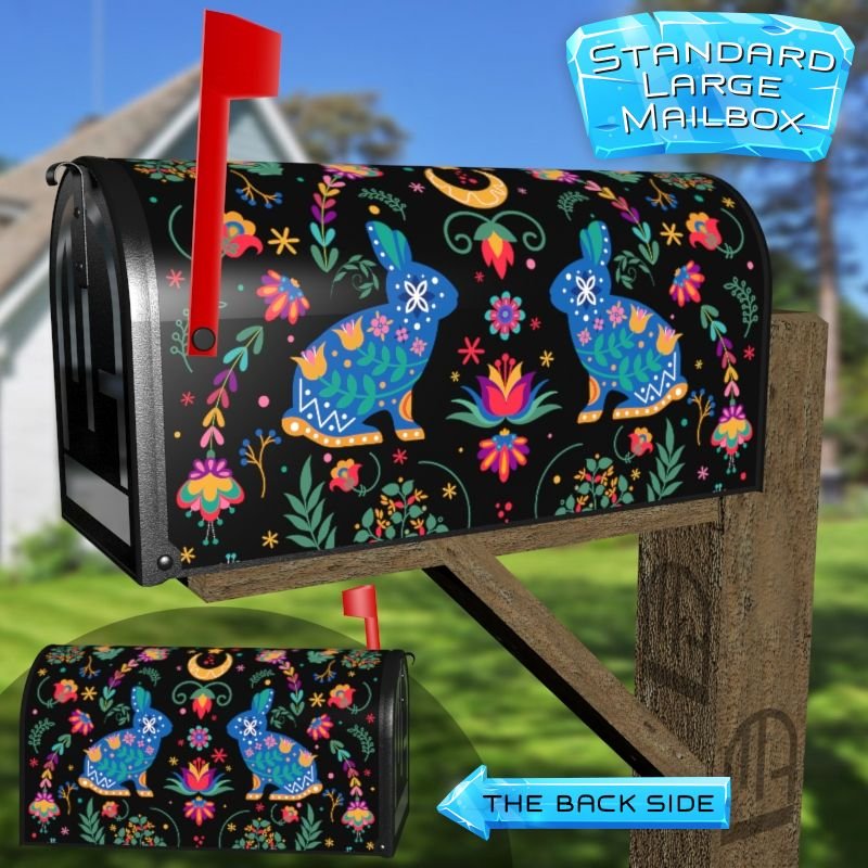 Dressing up your rural farm mailbox with the Scandinavian Folk Bunny Design mailbox cover is an easy way to convert it into a unique and special item. These covers require a smooth surface, so they are compatible with rural farm mailboxes that do not have any embossed decorations or signs. Magnetic mailbox covers work with steel boxes only, while self-adhesive vinyl covers are available for aluminum, plastic and steel boxes. If your mailbox is not compatible with these covers, you can purchase a brand new mailbox with a preinstalled cover. Additionally, you have the option to create a custom rural farm mailbox cover with your own pictures, name, street number, etc.