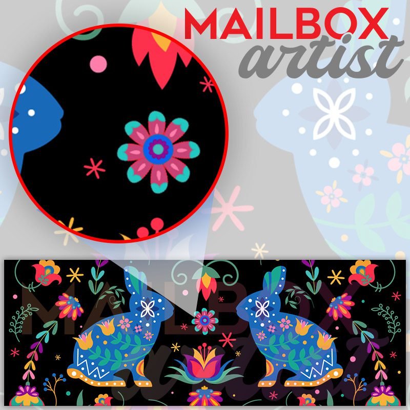 Applying your Scandinavian Folk Bunny Design townhouse / ranch mailbox cover it’s pretty easy to convert your mailbox to a special and unique item. These covers require a flat surface, so they work with townhouse / ranch mailboxes that do not have any embossed decoration or signs. Magnetic mailbox covers work with steel boxes, for aluminum and plastic boxes we offer the self-adhesive vinyl covers. In case your mailbox doesn’t work with these covers, you can purchase the preinstalled cover on a brand new mailbox as well. Also, you can create your custom townhouse / ranch mailbox cover using you own pictures, adding your name, street number, etc.