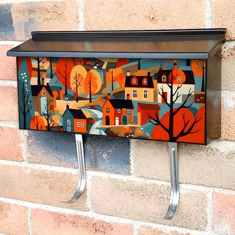 Applying your Scandinavian Folk Village #2 townhouse / ranch mailbox cover it’s pretty easy to convert your mailbox to a special and unique item. These covers require a flat surface, so they work with townhouse / ranch mailboxes that do not have any embossed decoration or signs. Magnetic mailbox covers work with steel boxes, for aluminum and plastic boxes we offer the self-adhesive vinyl covers. In case your mailbox doesn’t work with these covers, you can purchase the preinstalled cover on a brand new mailbox as well. Also, you can create your custom townhouse / ranch mailbox cover using you own pictures, adding your name, street number, etc.