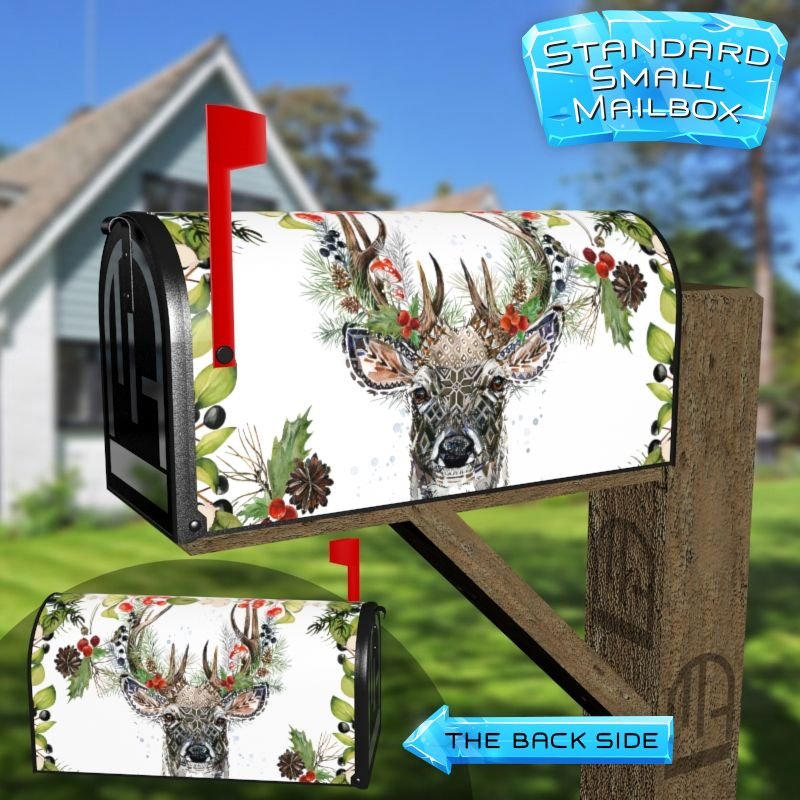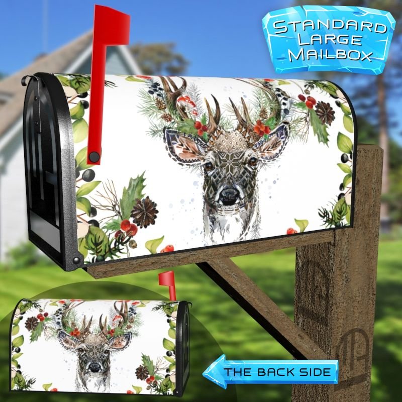 Dressing up your rural farm mailbox with the Scandinavian Winter Deer mailbox cover is an easy way to convert it into a unique and special item. These covers require a smooth surface, so they are compatible with rural farm mailboxes that do not have any embossed decorations or signs. Magnetic mailbox covers work with steel boxes only, while self-adhesive vinyl covers are available for aluminum, plastic and steel boxes. If your mailbox is not compatible with these covers, you can purchase a brand new mailbox with a preinstalled cover. Additionally, you have the option to create a custom rural farm mailbox cover with your own pictures, name, street number, etc.