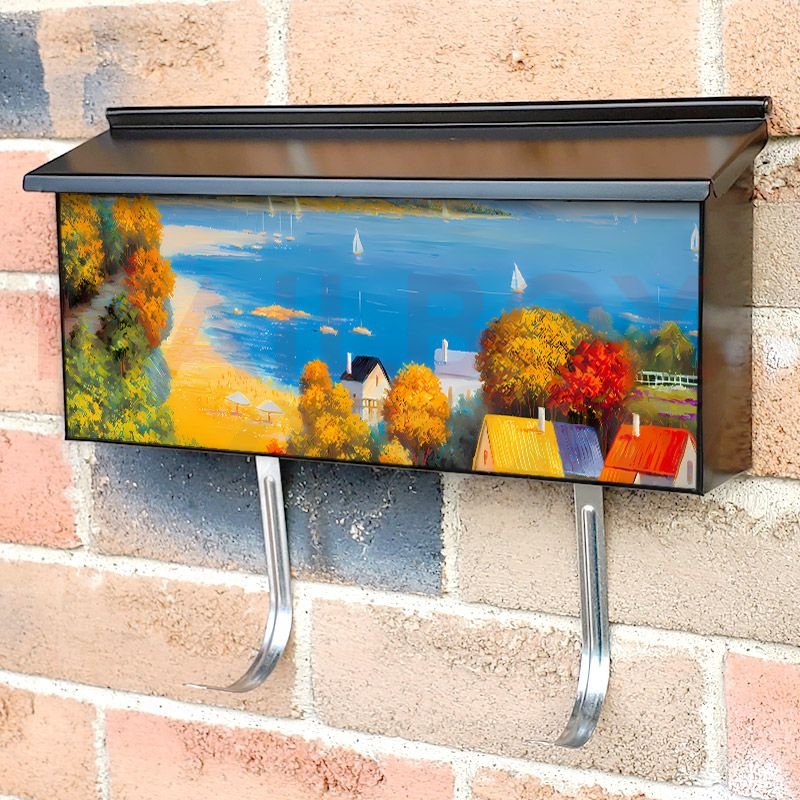 Applying your Seaside Italian Village townhouse / ranch mailbox cover it’s pretty easy to convert your mailbox to a special and unique item. These covers require a flat surface, so they work with townhouse / ranch mailboxes that do not have any embossed decoration or signs. Magnetic mailbox covers work with steel boxes, for aluminum and plastic boxes we offer the self-adhesive vinyl covers. In case your mailbox doesn’t work with these covers, you can purchase the preinstalled cover on a brand new mailbox as well. Also, you can create your custom townhouse / ranch mailbox cover using you own pictures, adding your name, street number, etc.