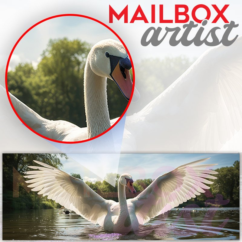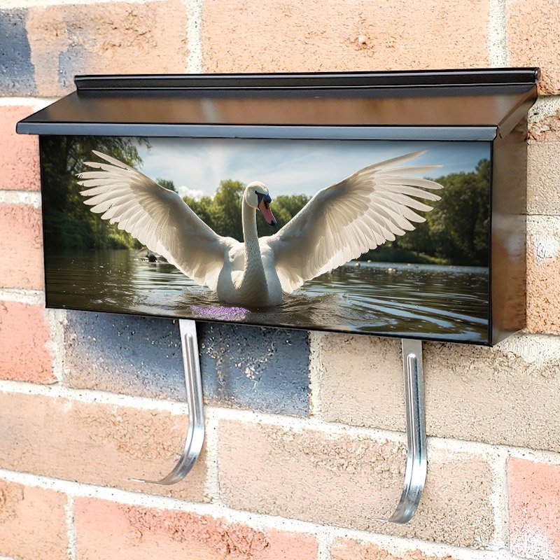 Applying your Shining White Feathered Swan Sitting On A Green Lake townhouse / ranch mailbox cover it’s pretty easy to convert your mailbox to a special and unique item. These covers require a flat surface, so they work with townhouse / ranch mailboxes that do not have any embossed decoration or signs. Magnetic mailbox covers work with steel boxes, for aluminum and plastic boxes we offer the self-adhesive vinyl covers. In case your mailbox doesn’t work with these covers, you can purchase the preinstalled cover on a brand new mailbox as well. Also, you can create your custom townhouse / ranch mailbox cover using you own pictures, adding your name, street number, etc.