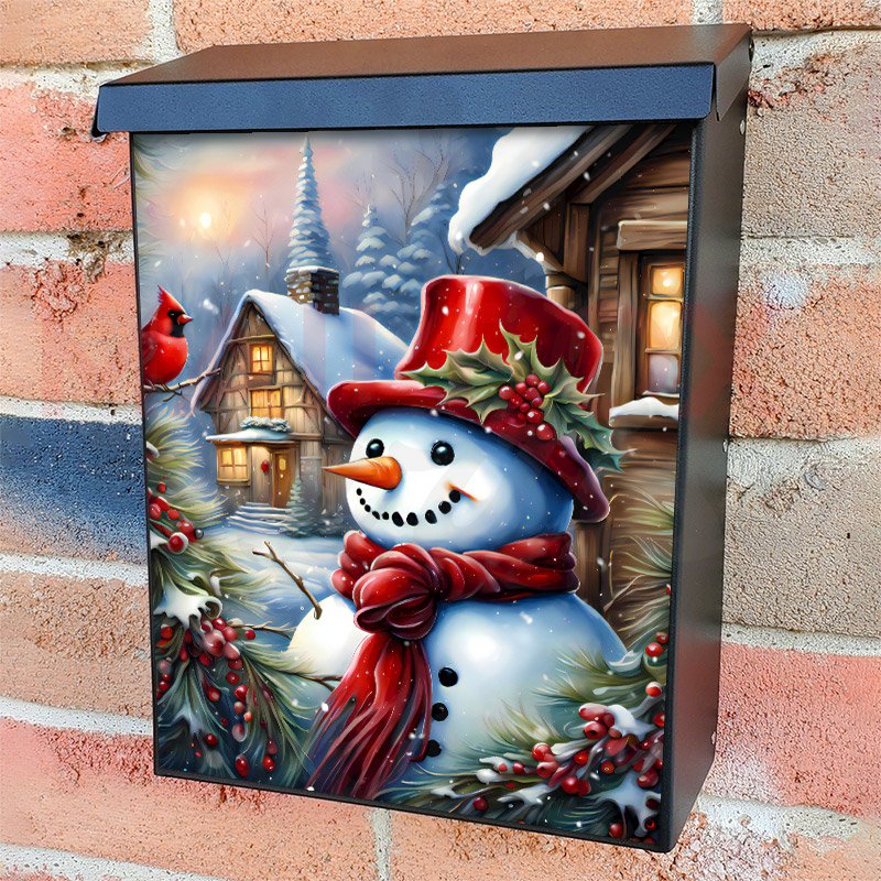 With this Smiling Cottage Snowman and Cardinal colonial mailbox cover it’s pretty easy to convert your mailbox to a special and unique item. These covers require a flat surface, so they work with colonial mailboxes that do not have any embossed decoration or signs. Magnetic mailbox covers work with steel colonial boxes only, while self-adhesive vinyl covers are available for aluminum, plastic and steel boxes. We also offer both self-adhesive and magnetic covers with regular opaque white vinyl or reflective vinyl, which works similarly to license plates or road signs. The reflective option makes the entire cover’s surface reflective, ensuring visibility at night. In case your mailbox doesn’t work with these covers, you can purchase the preinstalled cover on a brand new mailbox as well. Also, you can create your custom colonial mailbox cover using you own pictures, adding your name, street number, etc.