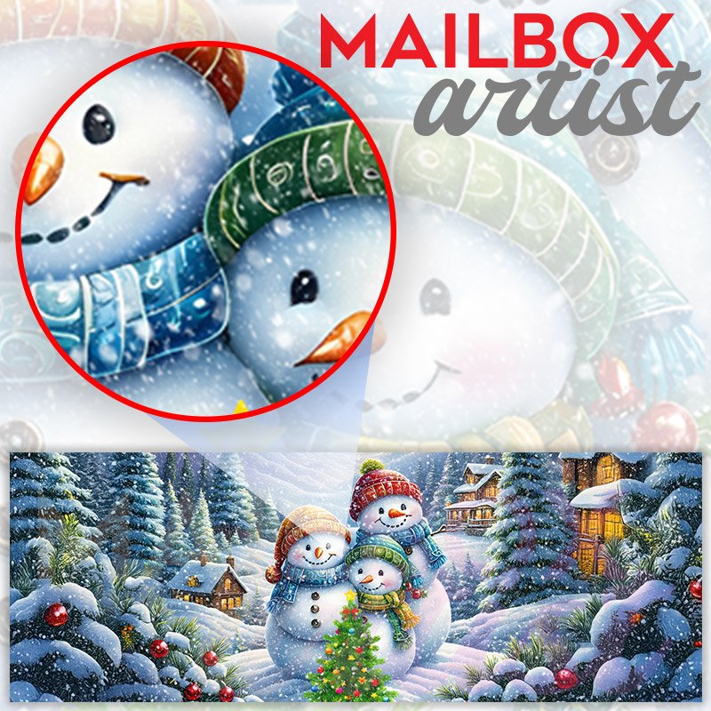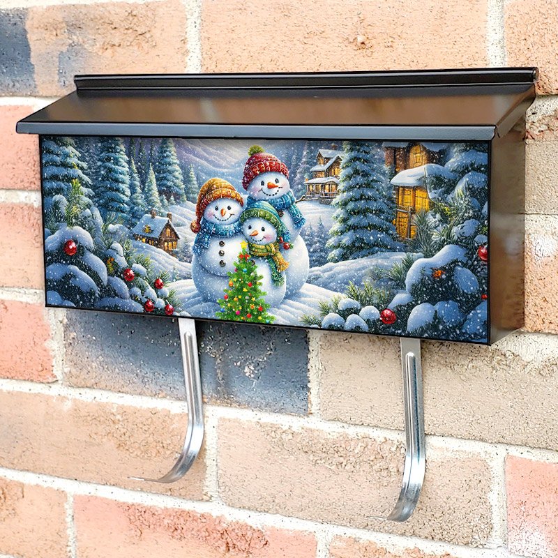 Applying your Snowman Family Christmas townhouse / ranch mailbox cover it’s pretty easy to convert your mailbox to a special and unique item. These covers require a flat surface, so they work with townhouse / ranch mailboxes that do not have any embossed decoration or signs. Magnetic mailbox covers work with steel boxes, for aluminum and plastic boxes we offer the self-adhesive vinyl covers. In case your mailbox doesn’t work with these covers, you can purchase the preinstalled cover on a brand new mailbox as well. Also, you can create your custom townhouse / ranch mailbox cover using you own pictures, adding your name, street number, etc.
