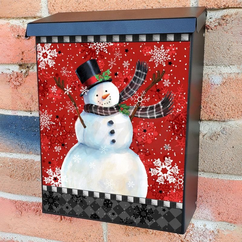 With this Snowman with Tweed Scarf colonial mailbox cover it’s pretty easy to convert your mailbox to a special and unique item. These covers require a flat surface, so they work with colonial mailboxes that do not have any embossed decoration or signs. In case your mailbox doesn’t work with these covers, you can purchase the preinstalled cover on a brand new mailbox as well. Also, you can create your custom colonial mailbox cover using you own pictures, adding your name, street number, etc.