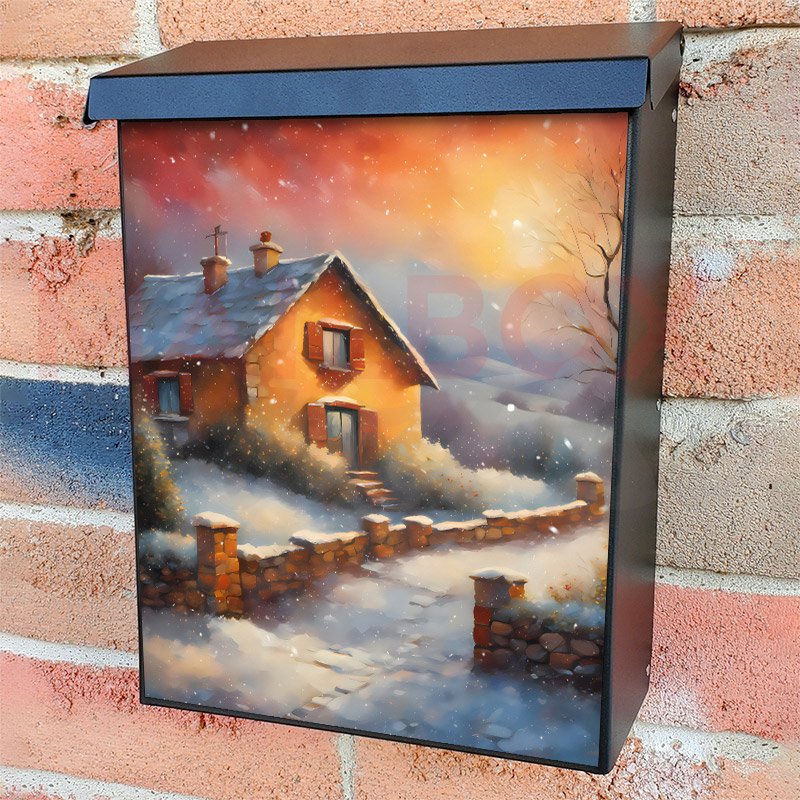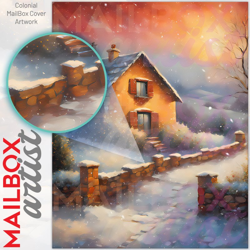 With this Snowy Day in Tuscany colonial mailbox cover it’s pretty easy to convert your mailbox to a special and unique item. These covers require a flat surface, so they work with colonial mailboxes that do not have any embossed decoration or signs. Magnetic mailbox covers work with steel colonial boxes only, while self-adhesive vinyl covers are available for aluminum, plastic and steel boxes. We also offer both self-adhesive and magnetic covers with regular opaque white vinyl or reflective vinyl, which works similarly to license plates or road signs. The reflective option makes the entire cover’s surface reflective, ensuring visibility at night. In case your mailbox doesn’t work with these covers, you can purchase the preinstalled cover on a brand new mailbox as well. Also, you can create your custom colonial mailbox cover using you own pictures, adding your name, street number, etc.
