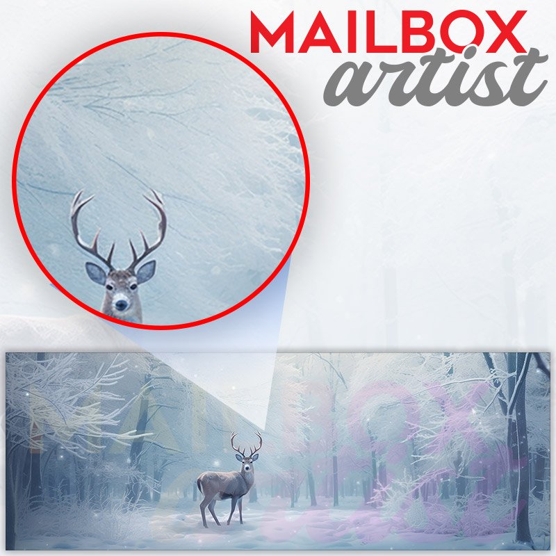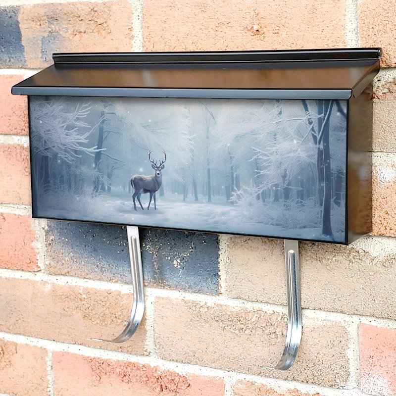 Applying your Snowy Trees Landscape With A Deer townhouse / ranch mailbox cover it’s pretty easy to convert your mailbox to a special and unique item. These covers require a flat surface, so they work with townhouse / ranch mailboxes that do not have any embossed decoration or signs. Magnetic mailbox covers work with steel boxes, for aluminum and plastic boxes we offer the self-adhesive vinyl covers. In case your mailbox doesn’t work with these covers, you can purchase the preinstalled cover on a brand new mailbox as well. Also, you can create your custom townhouse / ranch mailbox cover using you own pictures, adding your name, street number, etc.