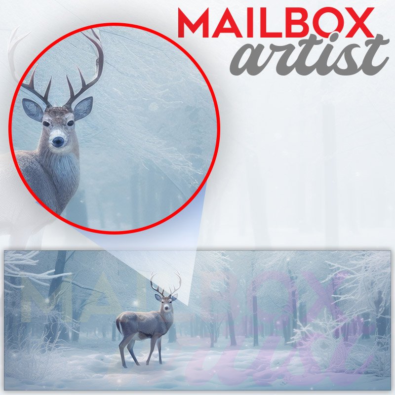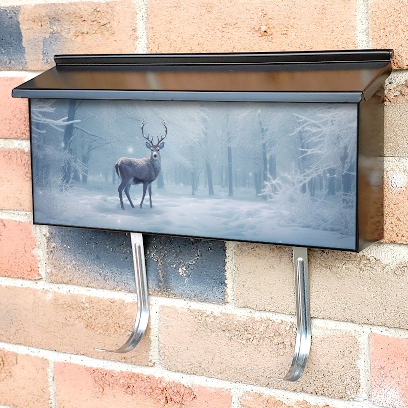 Applying your Snowy Trees Landscape With Deer townhouse / ranch mailbox cover it’s pretty easy to convert your mailbox to a special and unique item. These covers require a flat surface, so they work with townhouse / ranch mailboxes that do not have any embossed decoration or signs. Magnetic mailbox covers work with steel boxes, for aluminum and plastic boxes we offer the self-adhesive vinyl covers. In case your mailbox doesn’t work with these covers, you can purchase the preinstalled cover on a brand new mailbox as well. Also, you can create your custom townhouse / ranch mailbox cover using you own pictures, adding your name, street number, etc.