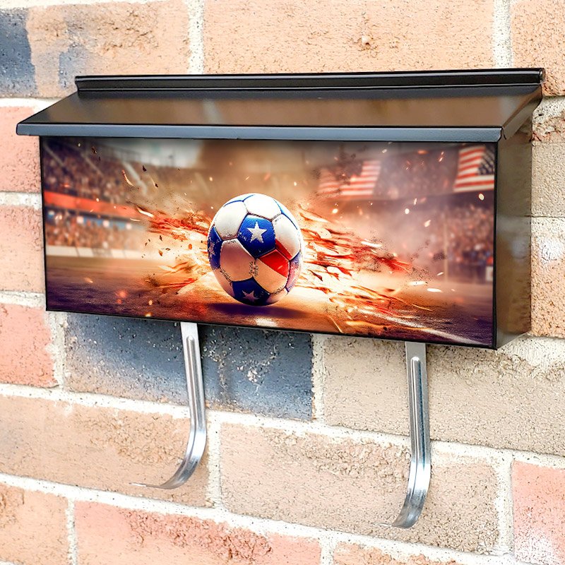 Applying your Soccer Football Ball With American Flag townhouse / ranch mailbox cover it’s pretty easy to convert your mailbox to a special and unique item. These covers require a flat surface, so they work with townhouse / ranch mailboxes that do not have any embossed decoration or signs. Magnetic mailbox covers work with steel boxes, for aluminum and plastic boxes we offer the self-adhesive vinyl covers. In case your mailbox doesn’t work with these covers, you can purchase the preinstalled cover on a brand new mailbox as well. Also, you can create your custom townhouse / ranch mailbox cover using you own pictures, adding your name, street number, etc.