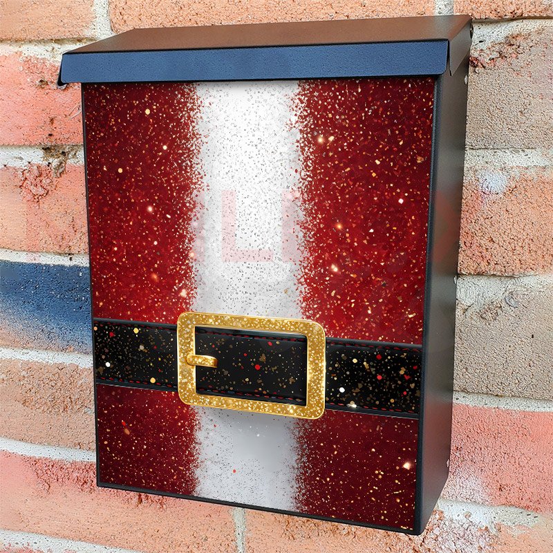 With this Sparkling Santa’s Outfit colonial mailbox cover it’s pretty easy to convert your mailbox to a special and unique item. These covers require a flat surface, so they work with colonial mailboxes that do not have any embossed decoration or signs. Magnetic mailbox covers work with steel colonial boxes only, while self-adhesive vinyl covers are available for aluminum, plastic and steel boxes. We also offer both self-adhesive and magnetic covers with regular opaque white vinyl or reflective vinyl, which works similarly to license plates or road signs. The reflective option makes the entire cover’s surface reflective, ensuring visibility at night. In case your mailbox doesn’t work with these covers, you can purchase the preinstalled cover on a brand new mailbox as well. Also, you can create your custom colonial mailbox cover using you own pictures, adding your name, street number, etc.