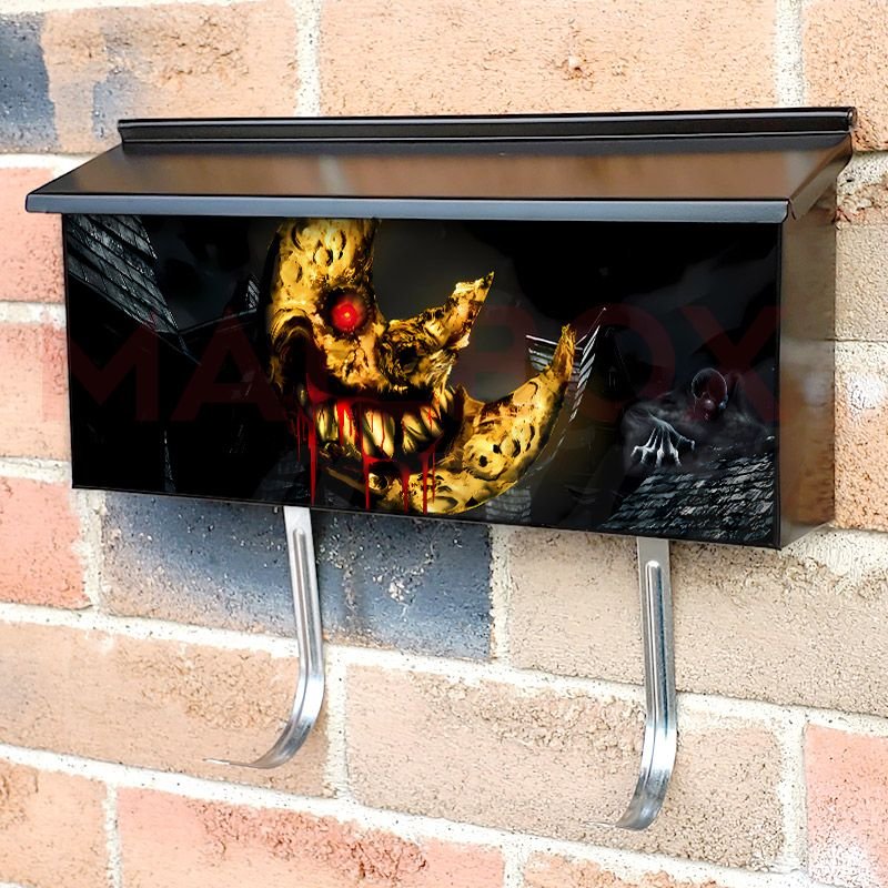 Applying your Spooky Bloody Moon #2 townhouse / ranch mailbox cover it’s pretty easy to convert your mailbox to a special and unique item. These covers require a flat surface, so they work with townhouse / ranch mailboxes that do not have any embossed decoration or signs. Magnetic mailbox covers work with steel boxes, for aluminum and plastic boxes we offer the self-adhesive vinyl covers. In case your mailbox doesn’t work with these covers, you can purchase the preinstalled cover on a brand new mailbox as well. Also, you can create your custom townhouse / ranch mailbox cover using you own pictures, adding your name, street number, etc.