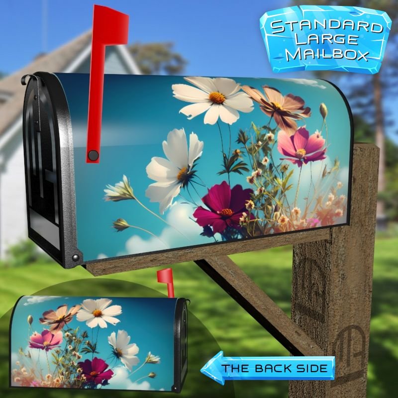 Dressing up your rural farm mailbox with the Spring Flowers in the Meadow #2 mailbox cover is an easy way to convert it into a unique and special item. These covers require a smooth surface, so they are compatible with rural farm mailboxes that do not have any embossed decorations or signs. Magnetic mailbox covers work with steel boxes only, while self-adhesive vinyl covers are available for aluminum, plastic and steel boxes. If your mailbox is not compatible with these covers, you can purchase a brand new mailbox with a preinstalled cover. Additionally, you have the option to create a custom rural farm mailbox cover with your own pictures, name, street number, etc.