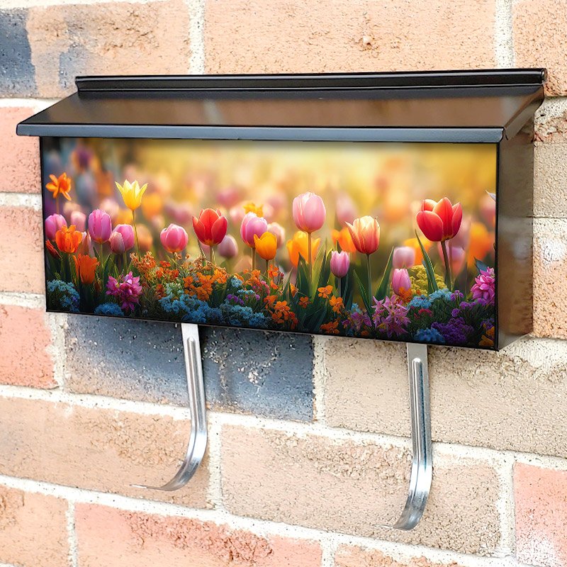 Applying your Springtime Colorful Tulips townhouse / ranch mailbox cover it’s pretty easy to convert your mailbox to a special and unique item. These covers require a flat surface, so they work with townhouse / ranch mailboxes that do not have any embossed decoration or signs. Magnetic mailbox covers work with steel boxes, for aluminum and plastic boxes we offer the self-adhesive vinyl covers. In case your mailbox doesn’t work with these covers, you can purchase the preinstalled cover on a brand new mailbox as well. Also, you can create your custom townhouse / ranch mailbox cover using you own pictures, adding your name, street number, etc.