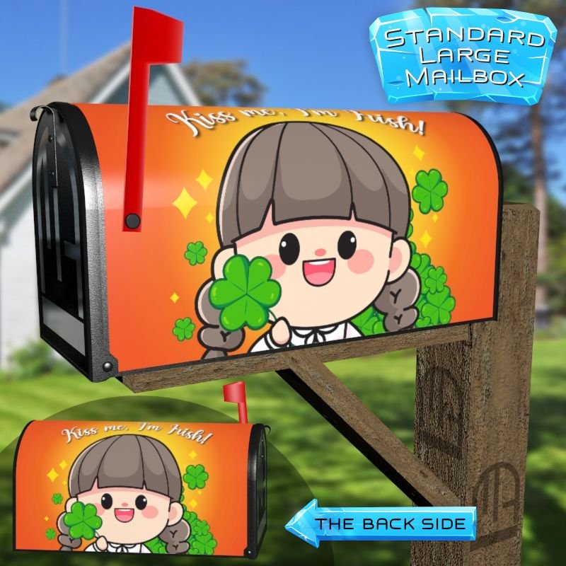 Dressing up your rural farm mailbox with the St. Patrick Day Girl #2 mailbox cover is an easy way to convert it into a unique and special item. These covers require a smooth surface, so they are compatible with rural farm mailboxes that do not have any embossed decorations or signs. Magnetic mailbox covers work with steel boxes only, while self-adhesive vinyl covers are available for aluminum, plastic and steel boxes. If your mailbox is not compatible with these covers, you can purchase a brand new mailbox with a preinstalled cover. Additionally, you have the option to create a custom rural farm mailbox cover with your own pictures, name, street number, etc.