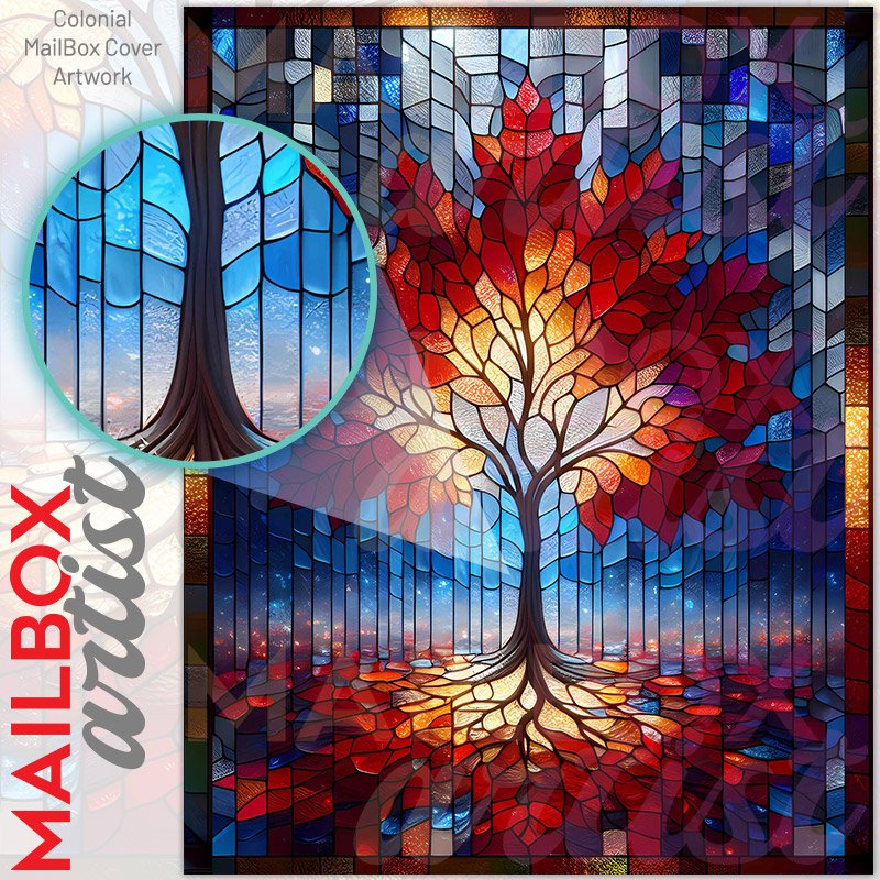 This Stained Glass Autumn Maple Tree mailbox design was created by Krisztina Soos