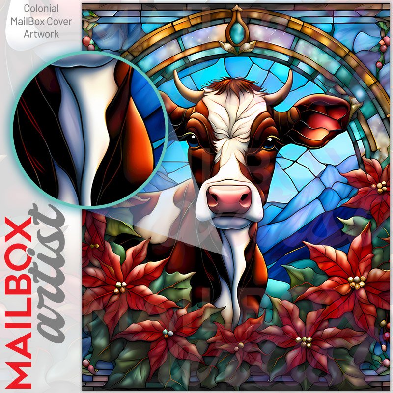 This Stained Glass Brown Christmas Cow mailbox design was created by Krisztina Soos