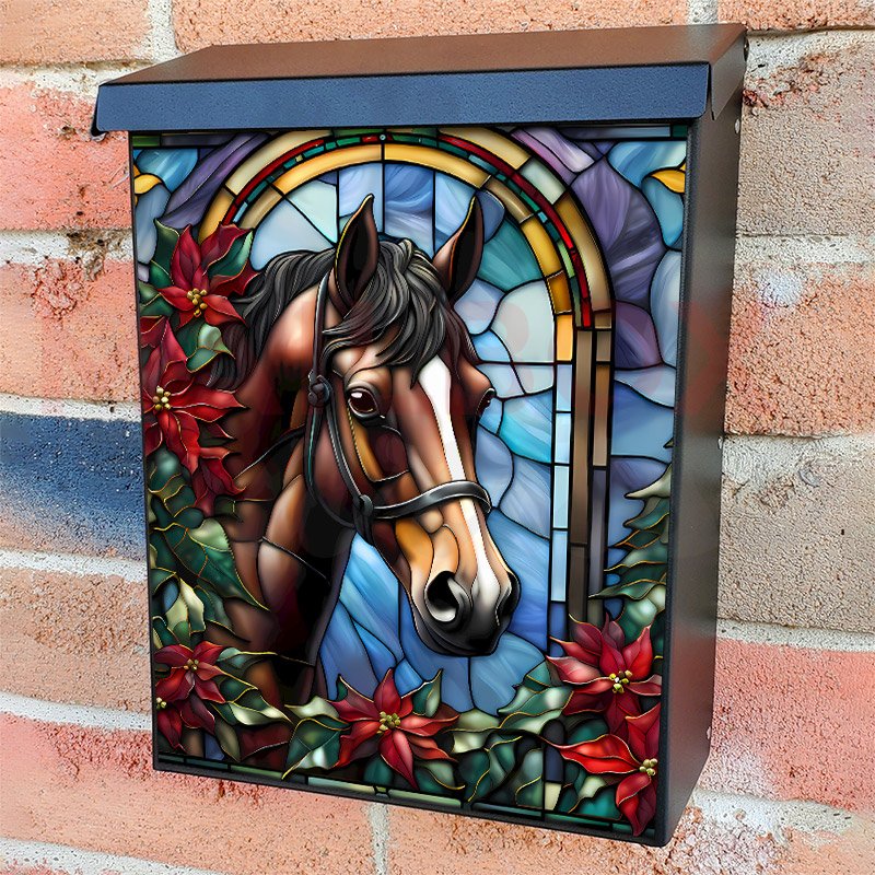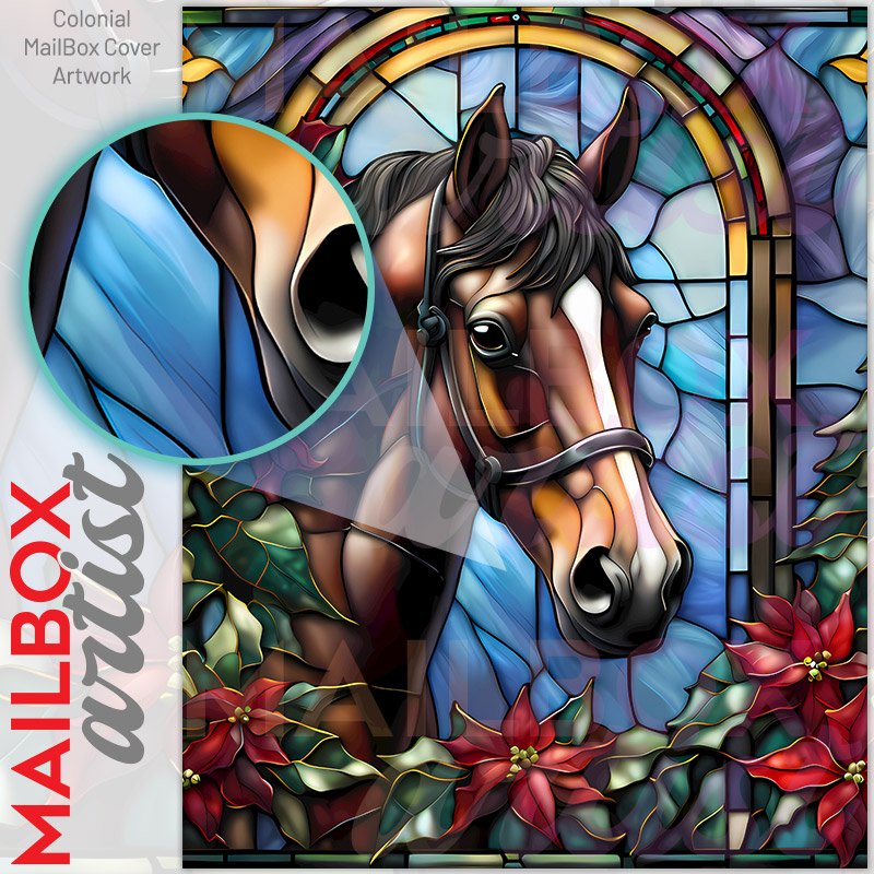 With this Stained Glass Brown Stallion colonial mailbox cover it’s pretty easy to convert your mailbox to a special and unique item. These covers require a flat surface, so they work with colonial mailboxes that do not have any embossed decoration or signs. Magnetic mailbox covers work with steel colonial boxes only, while self-adhesive vinyl covers are available for aluminum, plastic and steel boxes. We also offer both self-adhesive and magnetic covers with regular opaque white vinyl or reflective vinyl, which works similarly to license plates or road signs. The reflective option makes the entire cover’s surface reflective, ensuring visibility at night. In case your mailbox doesn’t work with these covers, you can purchase the preinstalled cover on a brand new mailbox as well. Also, you can create your custom colonial mailbox cover using you own pictures, adding your name, street number, etc.