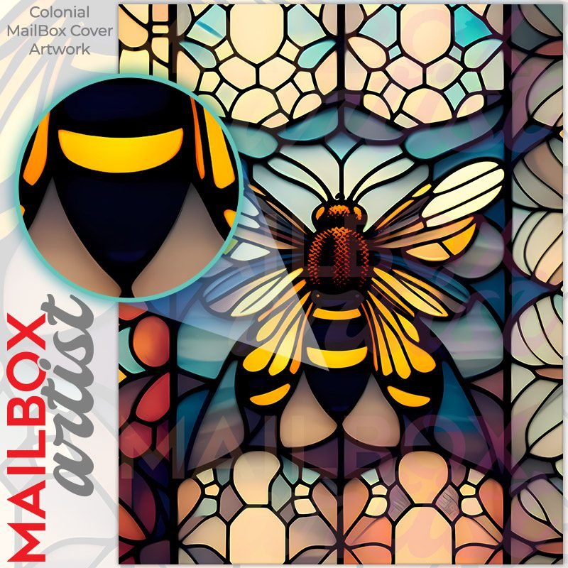 Stained Glass Bumblebee Design Colonial Mailbox Cover