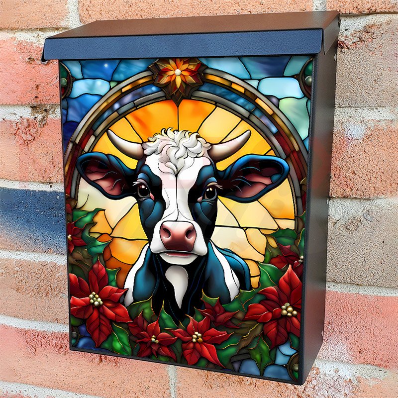 This Stained Glass Christmas Baby Cow mailbox design was created by Krisztina Soos