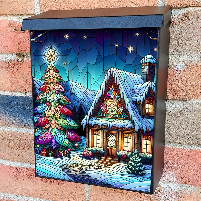 This Stained Glass Christmas Cottage mailbox design was created by Krisztina Soos