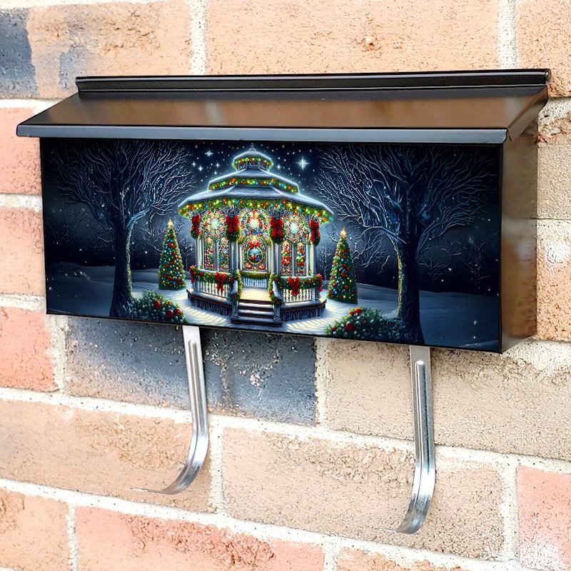 Applying your Stained Glass Christmas Gazebo townhouse / ranch mailbox cover it’s pretty easy to convert your mailbox to a special and unique item. These covers require a flat surface, so they work with townhouse / ranch mailboxes that do not have any embossed decoration or signs. Magnetic mailbox covers work with steel boxes, for aluminum and plastic boxes we offer the self-adhesive vinyl covers. In case your mailbox doesn’t work with these covers, you can purchase the preinstalled cover on a brand new mailbox as well. Also, you can create your custom townhouse / ranch mailbox cover using you own pictures, adding your name, street number, etc.
