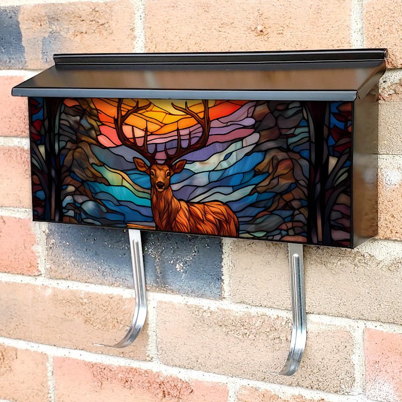 Applying your Stained Glass Deer Design townhouse / ranch mailbox cover it’s pretty easy to convert your mailbox to a special and unique item. These covers require a flat surface, so they work with townhouse / ranch mailboxes that do not have any embossed decoration or signs. Magnetic mailbox covers work with steel boxes, for aluminum and plastic boxes we offer the self-adhesive vinyl covers. In case your mailbox doesn’t work with these covers, you can purchase the preinstalled cover on a brand new mailbox as well. Also, you can create your custom townhouse / ranch mailbox cover using you own pictures, adding your name, street number, etc.
