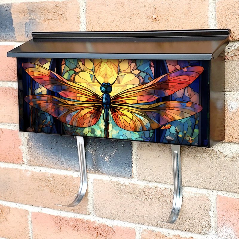 Stained Glass Dragonfly Design Townhouse Mailbox Cover