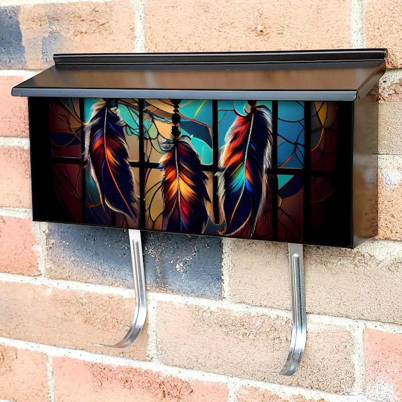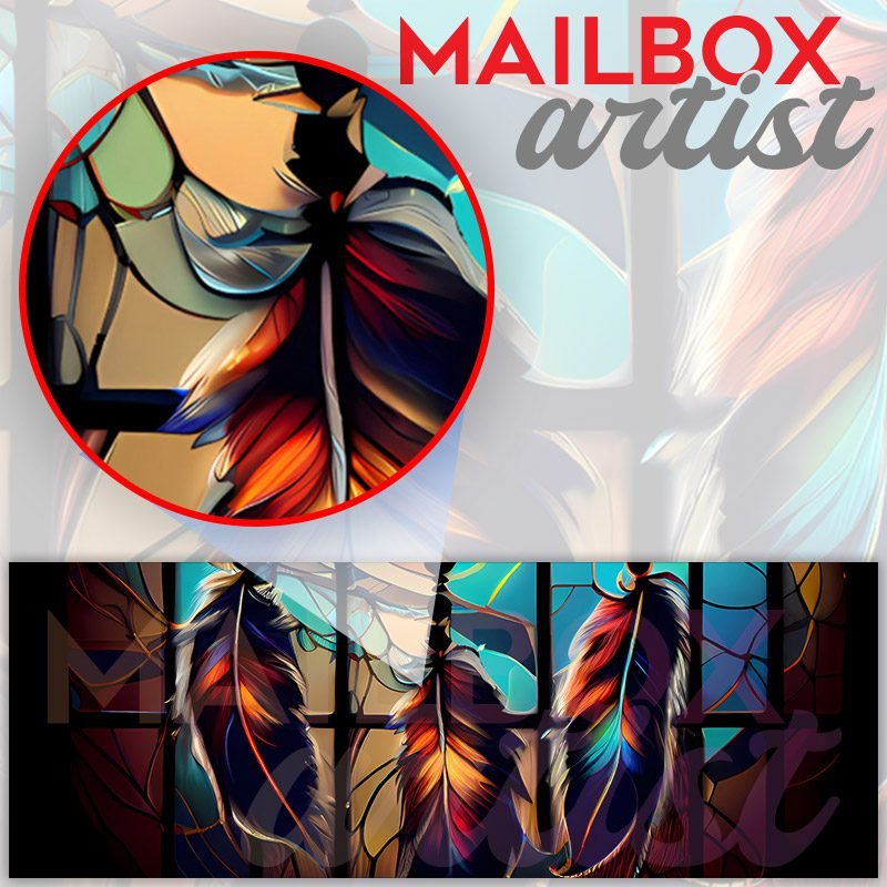 Applying your Stained Glass Dreamcatcher Design townhouse / ranch mailbox cover it’s pretty easy to convert your mailbox to a special and unique item. These covers require a flat surface, so they work with townhouse / ranch mailboxes that do not have any embossed decoration or signs. Magnetic mailbox covers work with steel boxes, for aluminum and plastic boxes we offer the self-adhesive vinyl covers. In case your mailbox doesn’t work with these covers, you can purchase the preinstalled cover on a brand new mailbox as well. Also, you can create your custom townhouse / ranch mailbox cover using you own pictures, adding your name, street number, etc.