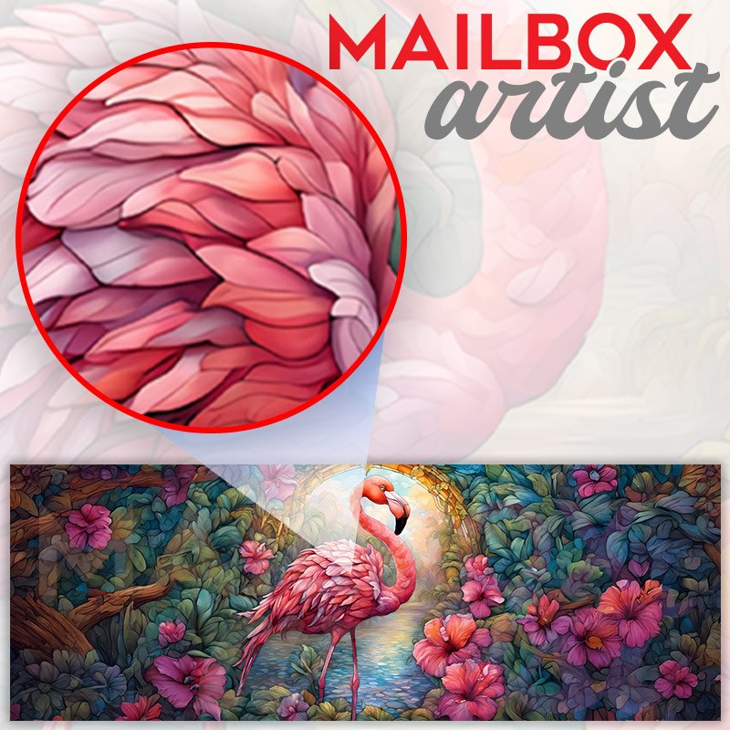 This Stained Glass Hibiscus and Flamingo mailbox design was created by Krisztina Soos