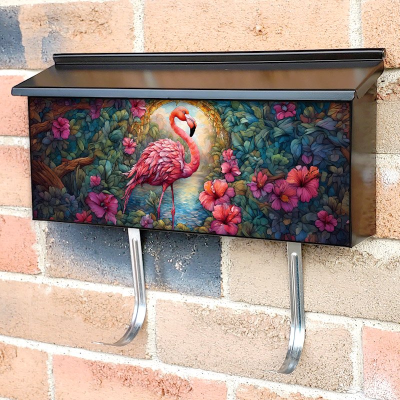 Applying your Stained Glass Hibiscus and Flamingo townhouse / ranch mailbox cover it’s pretty easy to convert your mailbox to a special and unique item. These covers require a flat surface, so they work with townhouse / ranch mailboxes that do not have any embossed decoration or signs. Magnetic mailbox covers work with steel boxes, for aluminum and plastic boxes we offer the self-adhesive vinyl covers. In case your mailbox doesn’t work with these covers, you can purchase the preinstalled cover on a brand new mailbox as well. Also, you can create your custom townhouse / ranch mailbox cover using you own pictures, adding your name, street number, etc.
