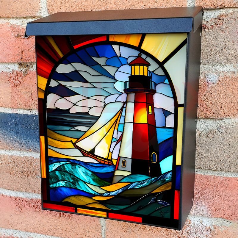 This Stained Glass Lighthouse Design mailbox design was created by Krisztina Soos