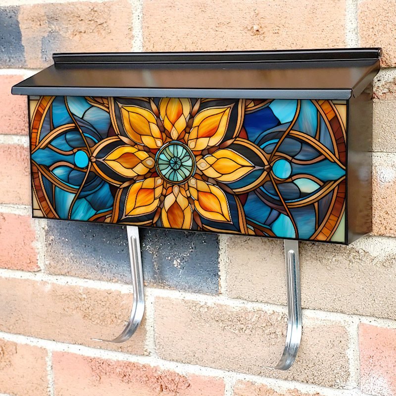 Applying your Stained Glass Mandala Design townhouse / ranch mailbox cover it’s pretty easy to convert your mailbox to a special and unique item. These covers require a flat surface, so they work with townhouse / ranch mailboxes that do not have any embossed decoration or signs. Magnetic mailbox covers work with steel boxes, for aluminum and plastic boxes we offer the self-adhesive vinyl covers. In case your mailbox doesn’t work with these covers, you can purchase the preinstalled cover on a brand new mailbox as well. Also, you can create your custom townhouse / ranch mailbox cover using you own pictures, adding your name, street number, etc.