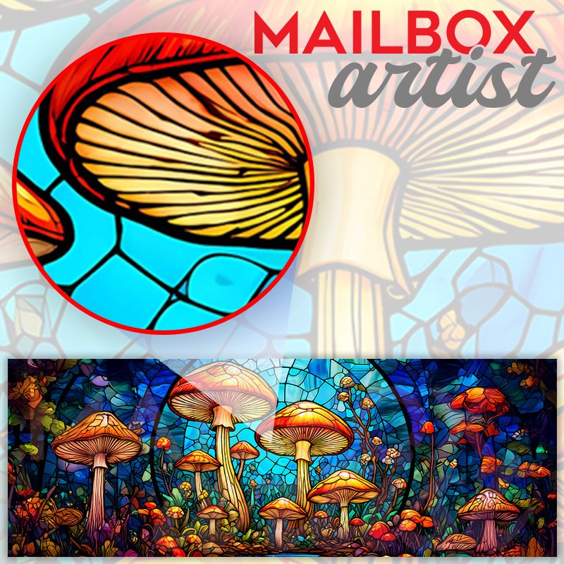 This Stained Glass Mushrooms mailbox design was created by Krisztina Soos
