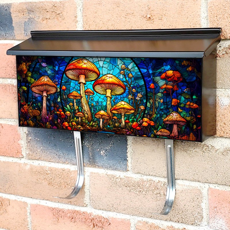 Applying your Stained Glass Mushrooms townhouse / ranch mailbox cover it’s pretty easy to convert your mailbox to a special and unique item. These covers require a flat surface, so they work with townhouse / ranch mailboxes that do not have any embossed decoration or signs. Magnetic mailbox covers work with steel boxes, for aluminum and plastic boxes we offer the self-adhesive vinyl covers. In case your mailbox doesn’t work with these covers, you can purchase the preinstalled cover on a brand new mailbox as well. Also, you can create your custom townhouse / ranch mailbox cover using you own pictures, adding your name, street number, etc.