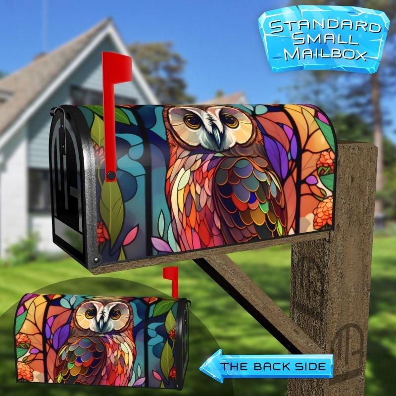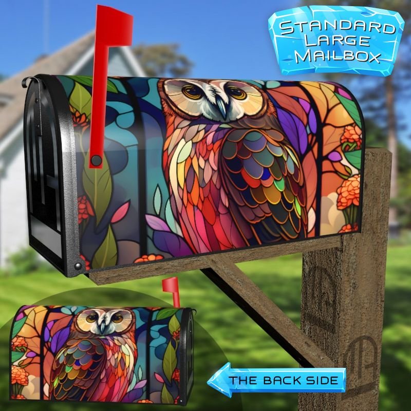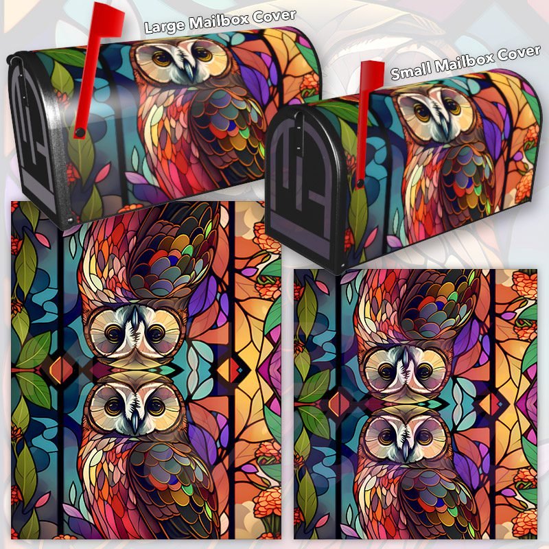 Stained Glass Owl and Flowers Design Decorative Rural Farm Mailbox Cover