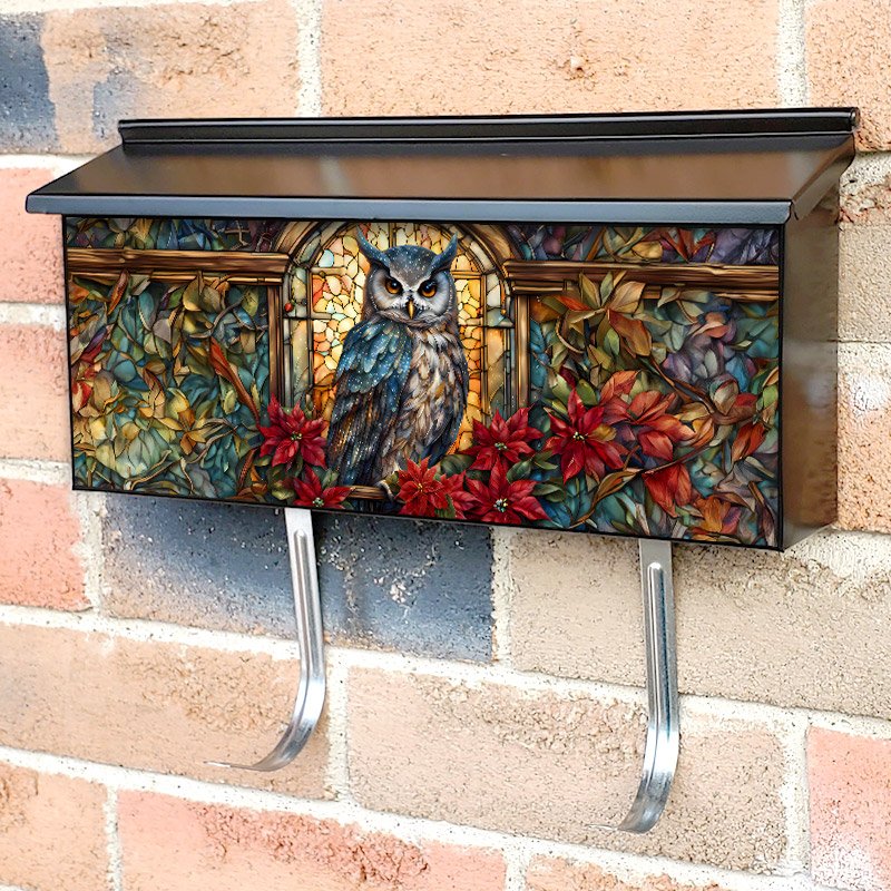 Applying your Stained Glass Poinsettias and Owl townhouse / ranch mailbox cover it’s pretty easy to convert your mailbox to a special and unique item. These covers require a flat surface, so they work with townhouse / ranch mailboxes that do not have any embossed decoration or signs. Magnetic mailbox covers work with steel boxes, for aluminum and plastic boxes we offer the self-adhesive vinyl covers. In case your mailbox doesn’t work with these covers, you can purchase the preinstalled cover on a brand new mailbox as well. Also, you can create your custom townhouse / ranch mailbox cover using you own pictures, adding your name, street number, etc.