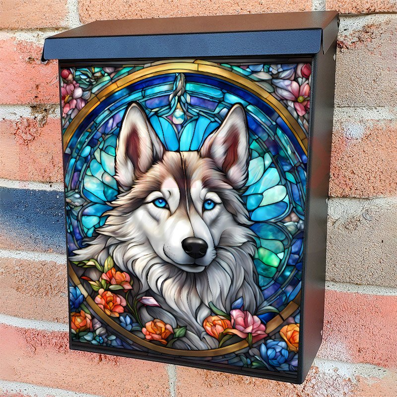 This Stained Glass Pretty Husky mailbox design was created by Krisztina Soos