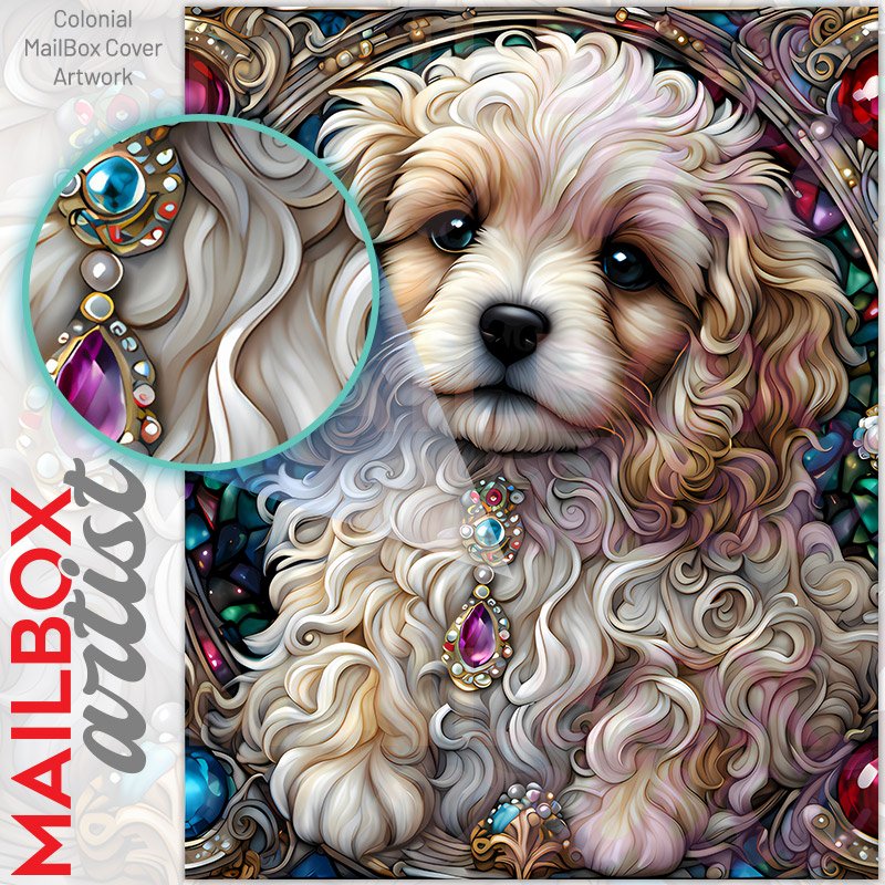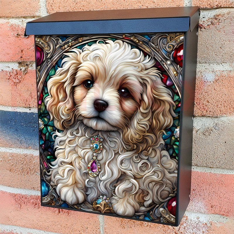 This Stained Glass Pretty Puppy mailbox design was created by Krisztina Soos