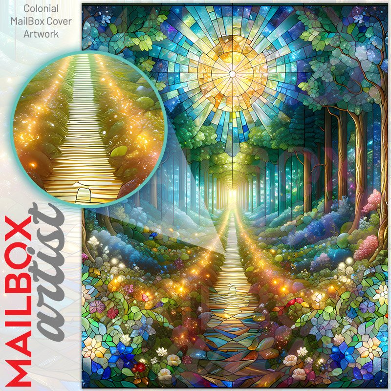 This Stained Glass Spring Forest Path mailbox design was created by Krisztina Soos