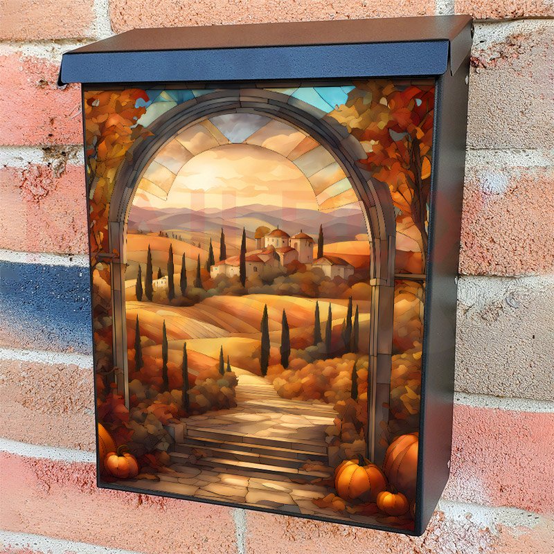 This Stained Glass Tuscan Autumn mailbox design was created by Krisztina Soos