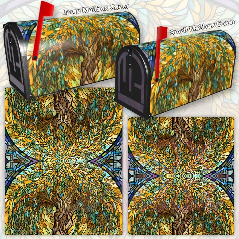 Dressing up your rural farm mailbox with the Stained Glass Willow Tree Design mailbox cover is an easy way to convert it into a unique and special item. These covers require a smooth surface, so they are compatible with rural farm mailboxes that do not have any embossed decorations or signs. Magnetic mailbox covers work with steel boxes only, while self-adhesive vinyl covers are available for aluminum, plastic and steel boxes. If your mailbox is not compatible with these covers, you can purchase a brand new mailbox with a preinstalled cover. Additionally, you have the option to create a custom rural farm mailbox cover with your own pictures, name, street number, etc.