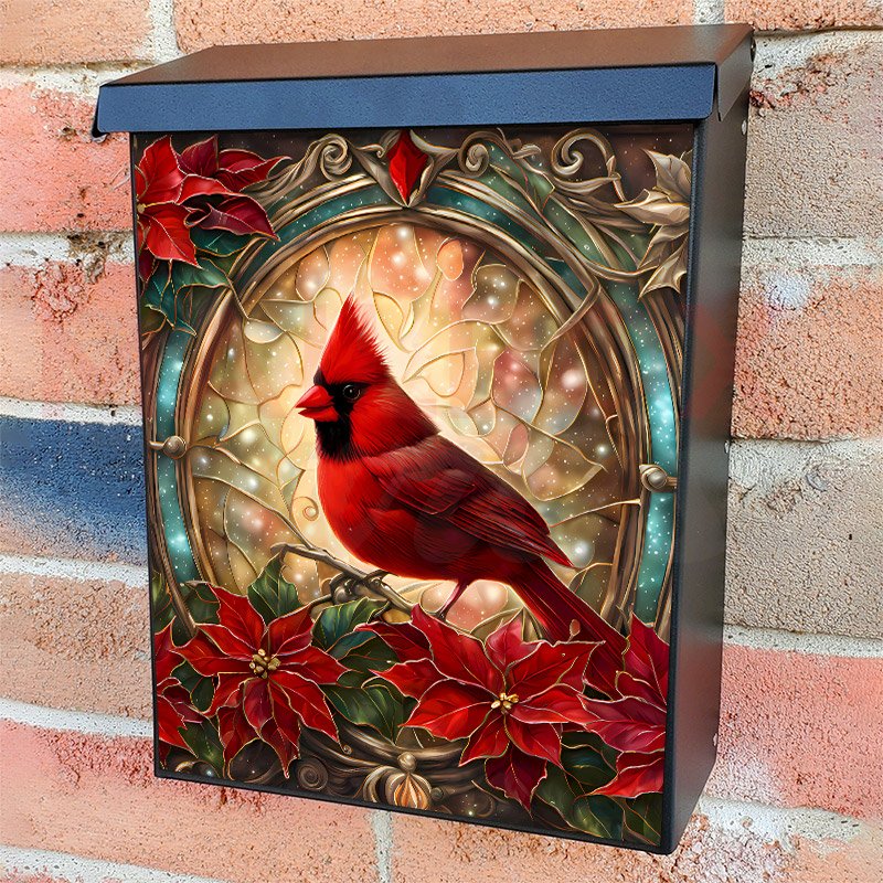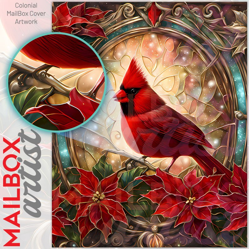 Stained Glass Window and Cardinal 2 Colonial Mailbox Cover