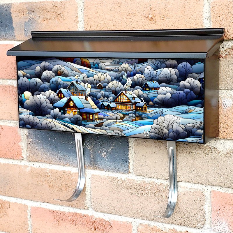 Applying your Stained Glass Winter Farmhouses townhouse / ranch mailbox cover it’s pretty easy to convert your mailbox to a special and unique item. These covers require a flat surface, so they work with townhouse / ranch mailboxes that do not have any embossed decoration or signs. Magnetic mailbox covers work with steel boxes, for aluminum and plastic boxes we offer the self-adhesive vinyl covers. In case your mailbox doesn’t work with these covers, you can purchase the preinstalled cover on a brand new mailbox as well. Also, you can create your custom townhouse / ranch mailbox cover using you own pictures, adding your name, street number, etc.