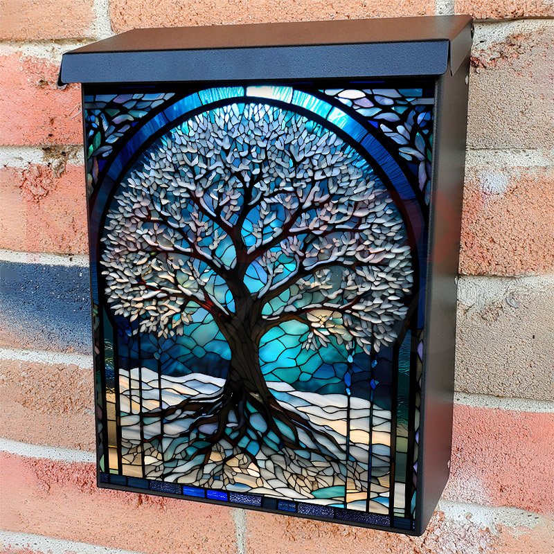 This Stained Glass Winter Tree 2 mailbox design was created by Krisztina Soos