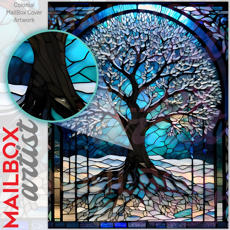 Stained Glass Winter Tree 2 Colonial Mailbox Cover